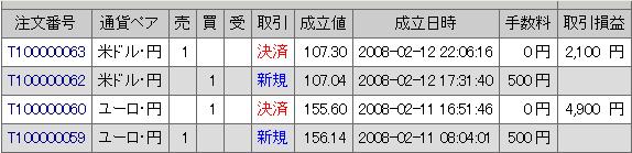 12日夜に仕掛けた加ドルが予想通り反動で下がり、トリガーに引っかかった。と、ここまでは良かった。その後も順当に落ちるかと思われたが、V字で回復して結局、一番底でくじを引いてしまった格好になった。13日の夜気づいたときにはすでに-5000オーバー、早々に損切りで結局-7295円。その後、14日になって早々米ドルを買で入るも小幅な値動きで膠着状態。結局週またがりをして19日3:30現在も持ったままだ。と言うことで、現在まで成績は-300円。やはり、少額での取引の場合手数料が片道500円なのは痛い。(実取引をしているわけではないので、実際の懐は痛くも痒くもないが・・・)
